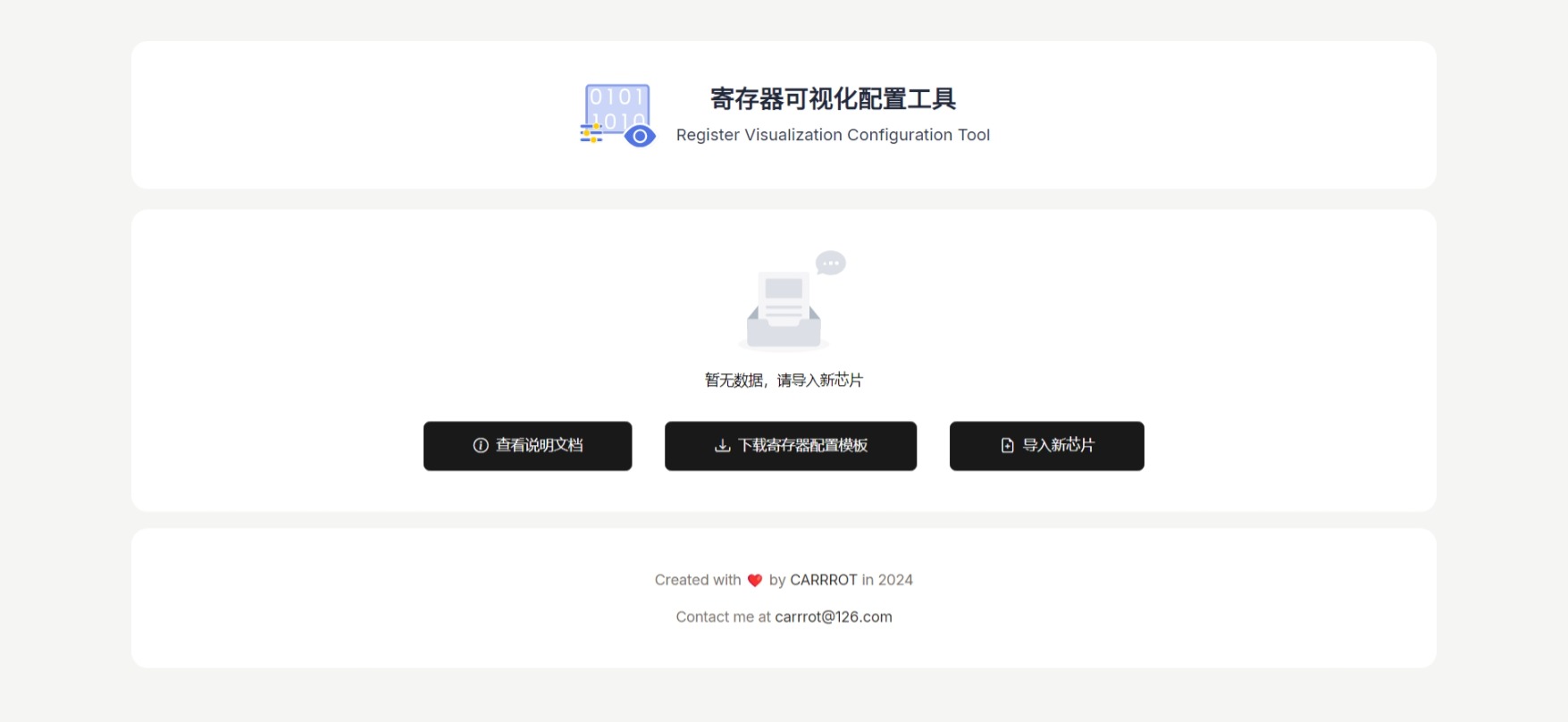 打开工具后可以看到如上页面,需要点击「导入新芯片」导入数据手册才能使用。