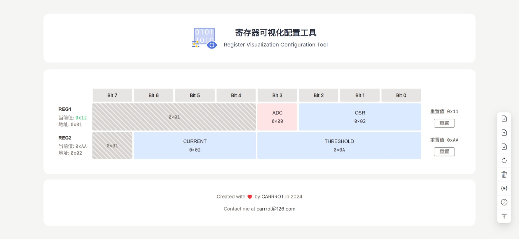 在接触一个新的IC的时候,如果没有demo,需要根据数据手册逐个寄存器配置,一边比对,一边敲代码不太优雅和直观,于是弄了这个支线项目。通过可视化的方式编辑寄存器各个位的值,可以根据需要生成代码,使得配置工作更加直观高效。